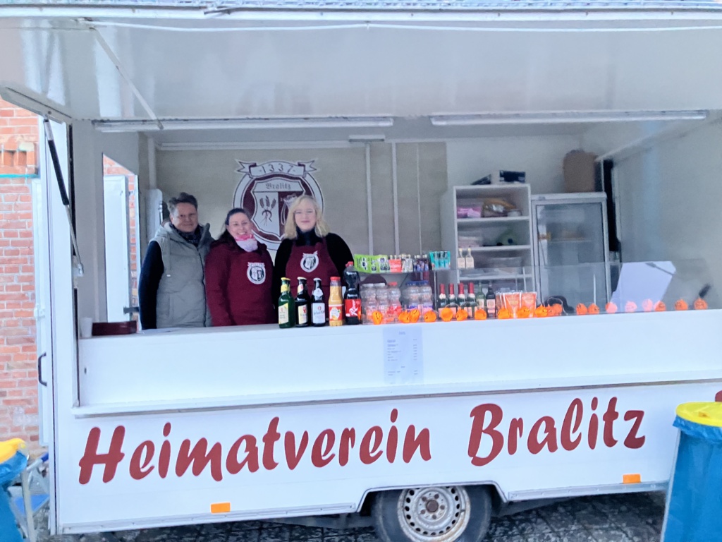 Auch für das leibliche Wohl wurde bestens gesorgt: Die Freiwillige Feuerwehr Bralitz sorgte mit dem Grillstand für herzhafte Speisen. Für wärmende Leckereien war der Heimatverein zuständig, der die Gäste mit köstlichen Suppen und einer Auswahl an Getränken versorgte, was an diesem kühlen Abend besonders willkommen war.